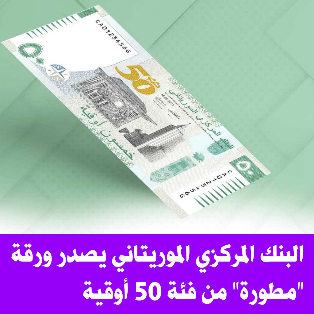 أعلن البنك المركزي الموريتاني عن إطلاق إصدار جديد من الورقة النقدية من فئة 50 أوقية، وذلك في إطار تخليد الذكرى الخمسين للعملة الوطنية.