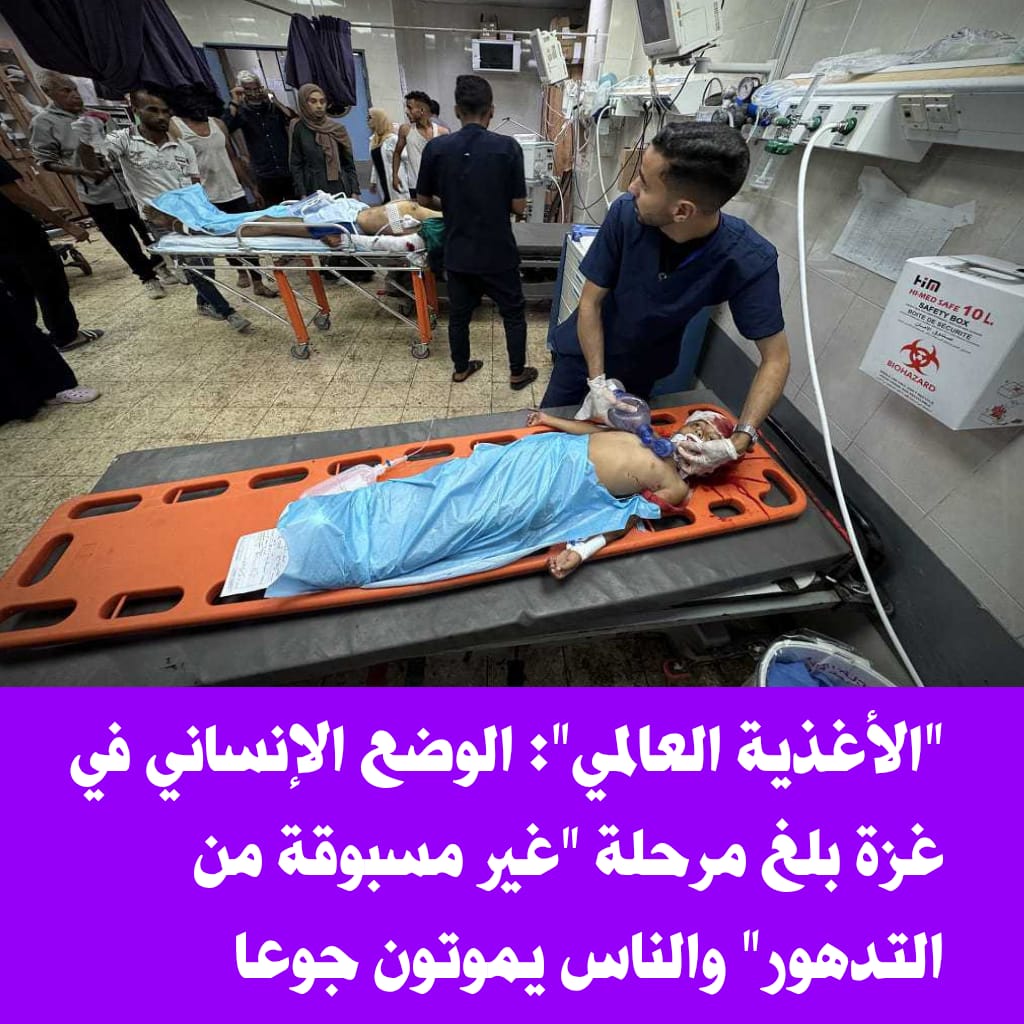 "الأغذية العالمي": الوضع الإنساني في غزة بلغ مرحلة "غير مسبوقة من التدهور" والناس يموتون جوعا