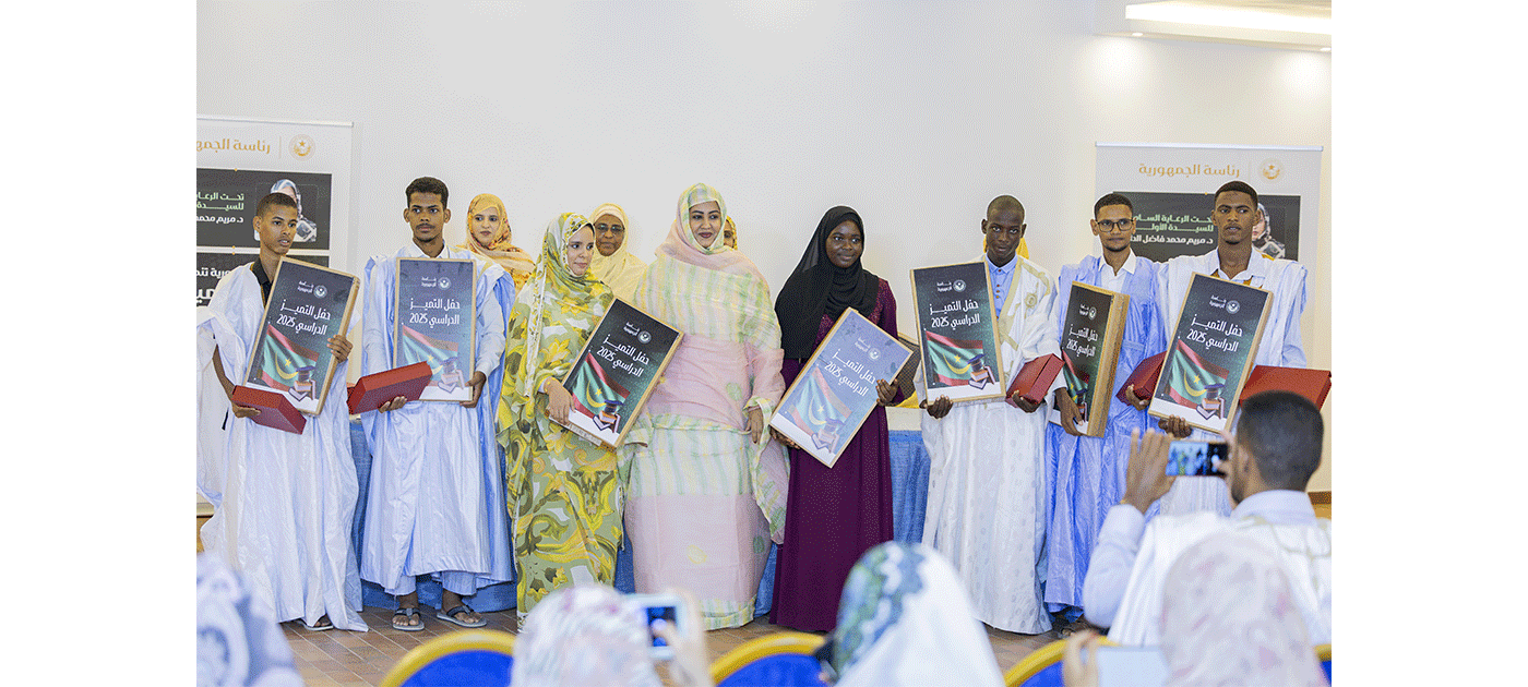 أشرفت السيدة الأولى، الدكتورة مريم محمد فاضل الداه، مساء اليوم الجمعة بالقصر الرئاسي في نواكشوط، على حفل تكريم الطلبة المتفوقين في الامتحانات الوطنية، بما فيهم بعض الطلاب من ذوي الهمم، وذلك بحضور عدد من الشخصيات التربوية وأسر الطلاب، وسط أجواء احتفالية طغت عليها مشاعر الفخر والاعتزاز بالنتائج المُشرِّفة التي حققها أبناء وبنات الوطن.