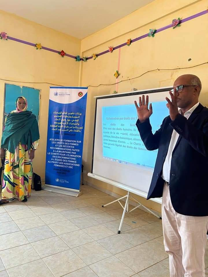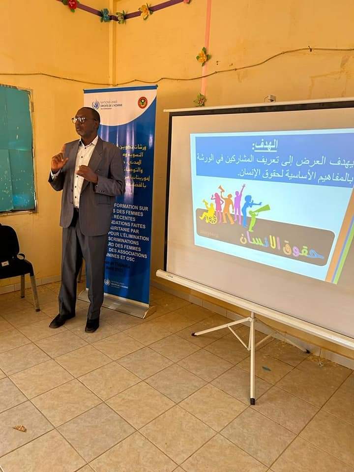بدأت صباح اليوم الجمعة بمدينة تجكجة المرحلة الثانية من سلسلة ورشات التكوين المنظمة من طرف مكتب المفوضية السامية للأمم المتحدة في بلادنا بالتعاون مع مفوضية حقوق الإنسان والعمل الانساني والعلاقات مع المجتمع المدني الهادفة إلى تعزيز قدرات الجمعيات النسوية ومنظمات المجتمع المدني الناشطة في مجال حقوق الانسان؛ حول حقوق المراة إضافة إلى التوصيات الأخيرة التي صدرت لبلاد في اعقاب تقديم تقريرها الرابع أمام اللجنة المعنية بمتابعة وتنفيذ مقتضيات الاتفاقية الدولية لمكافحة التمييز ضد المرأة .