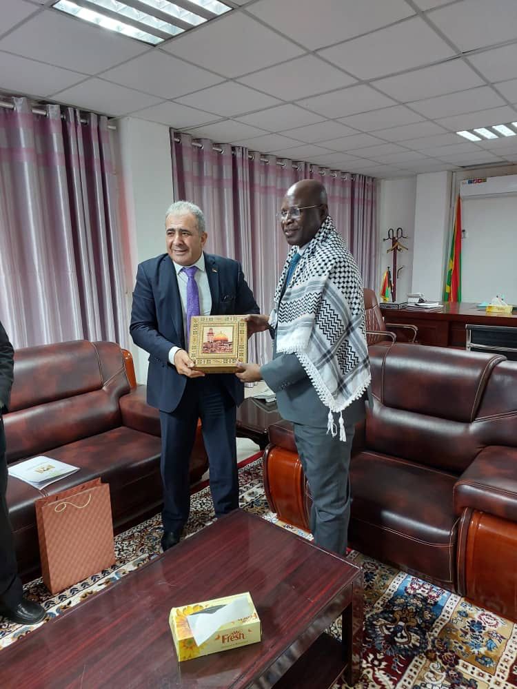 استقبل وزير الشؤون الإسلامية الموريتاني السيد سيدي يحي شيخنا لمرابط سفير دولة فلسطين د محمد الاسعد