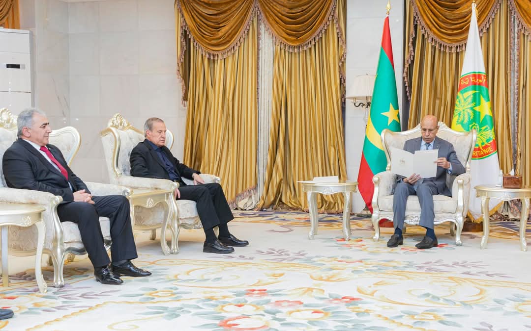 استقبل رئيس الجمهورية، السيد محمد ولد الشيخ الغزواني، اليوم الاثنين في القصر الرئاسي بنواكشوط، السيد نبيل جورج أبو ردينه، بصفته مبعوثا خاصا محملا برسالة خطية من رئيس دولة فلسطين إلى رئيس الجمهورية.