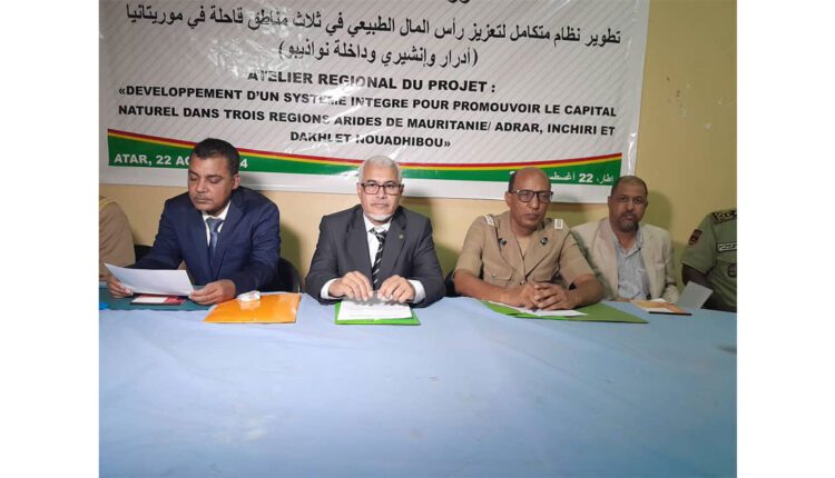 أشرف والي آدرار، السيد عبد الله ولد محمد محمود، صباح اليوم الخميس بمدينة أطار، على انطلاق ورشة عمل حول مشروع تطوير نظام متكامل لتعزيز رأس المال الطبيعي في ثلاث مناطق قاحلة في موريتانيا (آدرار-انشيري-نواذيبو)،
