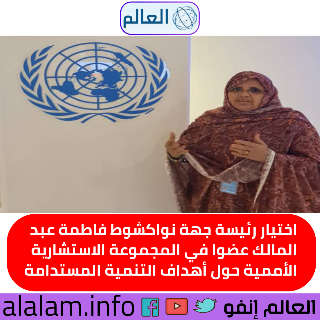 بناء على مقترح من الأمين العام للأمم المتحدة، تم اختيار السيدة فاطمة عبد المالك رئيسة جهة نواكشوط عضوا في المجموعة الاستشارية الأممية حول أهداف التنمية المستدامة.