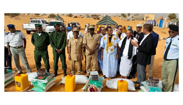 أشرف والي الحوض الغربي السيد أحمدا مامادو كلي مساء امس السبت في مدينة الطينطان على توزيع مواد غذائية و خيم و أفرشة على الاسر المتضررة من العاصفة التي تعرضت لها مدينة الطينطان و بعض القرى التابعة للمقاطعة مساء الاربعاء .