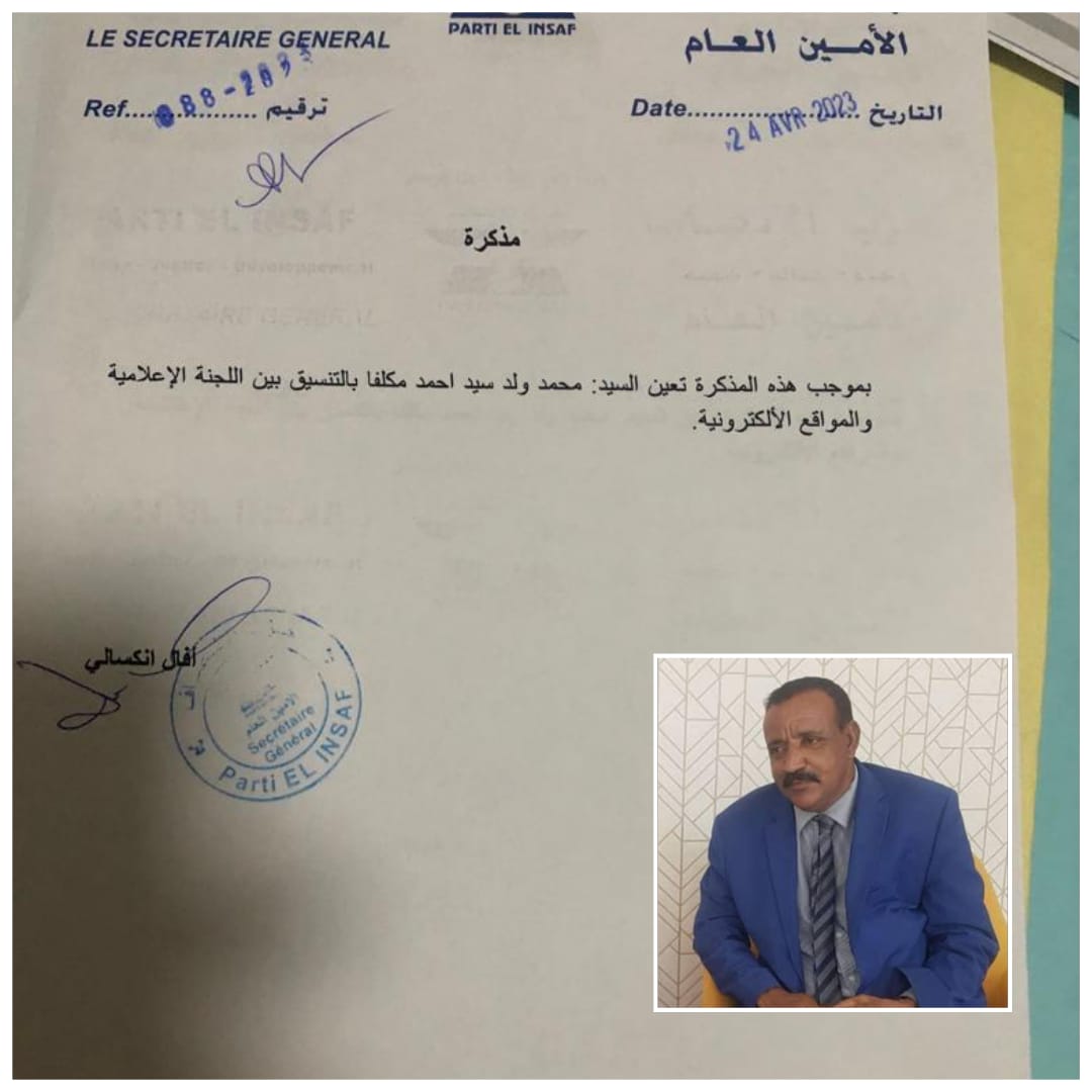 إنطلقت ليلة أمس بمقر حزب الانصاف بمدينة الطينطان فعاليات الحملة الانتخابية الممهدة للاستحققات الانتخابية 13مايو 2023.