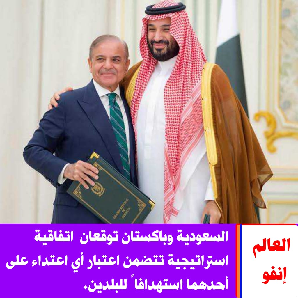 السعودية وباكستان توقعان اتفاقية استراتيجية تتضمن اعتبار أي اعتداء على أحدهما استهدافاً للبلدين.